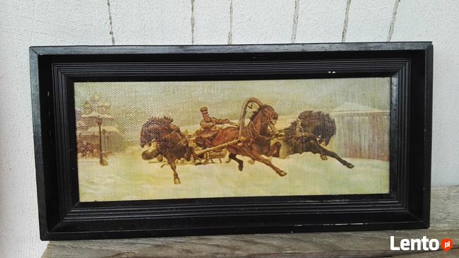 Mała reprodukcja znanego obrazu Józefa Chełmońskego Trójka, olej na płótnie