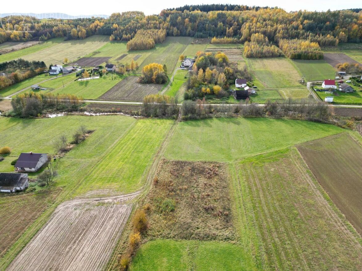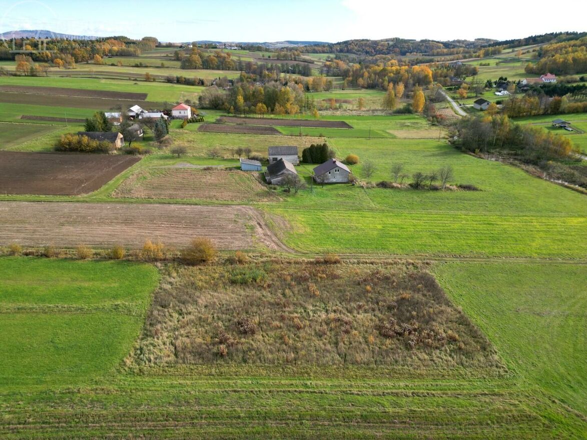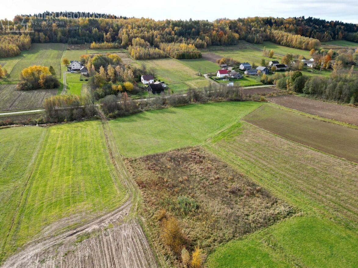 Działka o powierzchni 23 ary ma kształt zbliżony do prostokąta (ok. 42 x 57 x 38 x 56 m), jest delikatnie nachylona, dzięki czemu roztacza się z niej piękny widok na otaczające lasy i pola. To idealna propozycja dla osób poszukujących własnego miejsca z dala od miejskiego zgiełku do zamieszkania, rekreacji lub jako inwestycja w przyszłość.