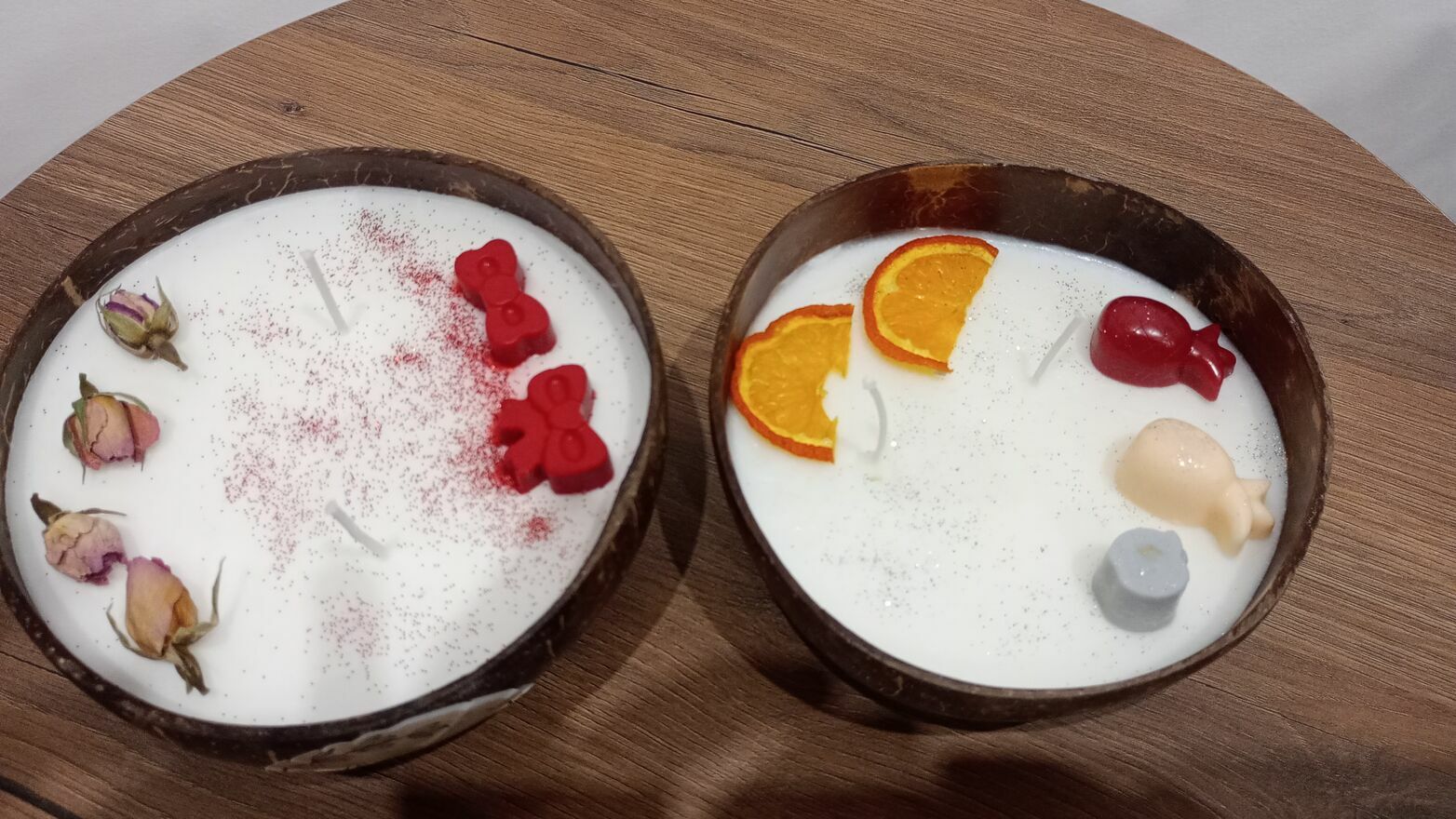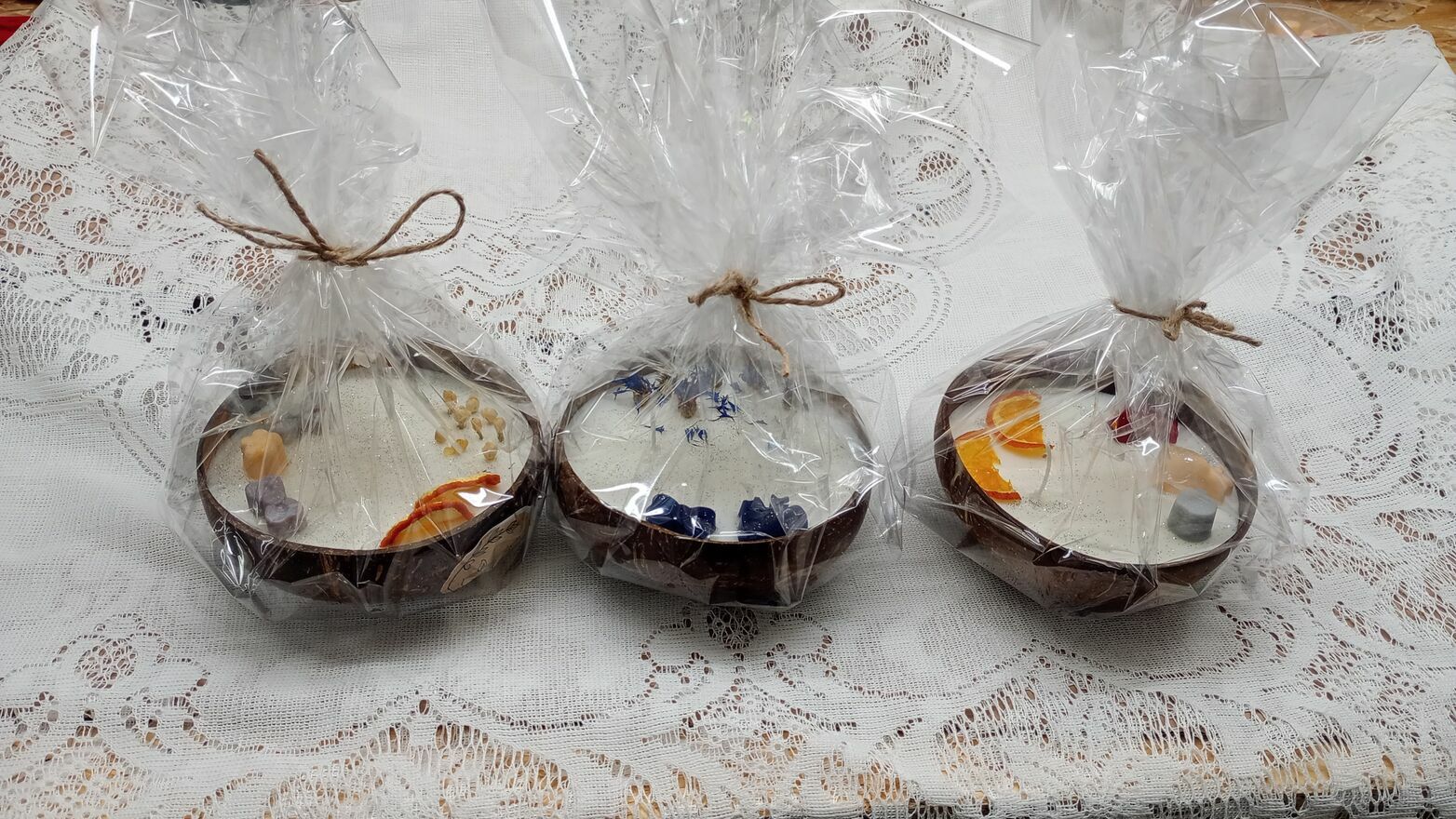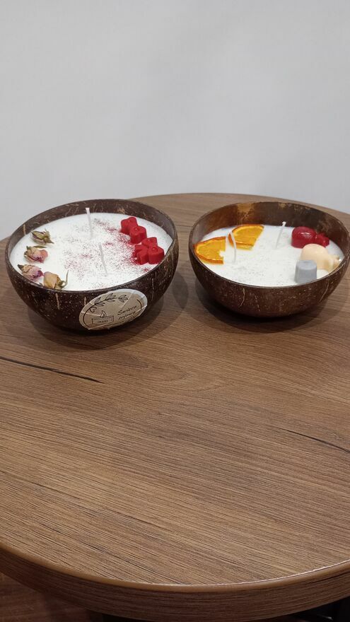 Ręcznie robione świece sojowe w naturalnej misce kokosa.Wykonane z naturalnego wosku sojowego.Idealne na prezent, walentynki, urodziny, do domu,relaksu ,spa .100 %wosk sojowy (ekologiczny, nietoksyczny).Dwa knoty dla równomiernego palenia, różne dekoracje ,zapach pomarańczy,cydru .Zapraszam do kontaktu 534 - pokaż numer telefonu - , możliwość wysyłki / odbiór osobisty .Monika